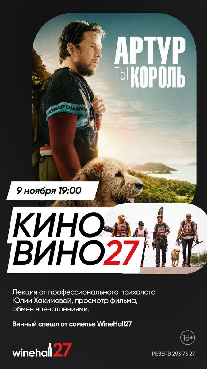 9 ноября в 19:00 Music Hall 27 Приглашаем на киноразбор фильма «Артур, ты король» Ведущая: Юлия Михайловна, психоаналитик, переводчик с бессознательного на понятный. О фильме: Основанная на реальных событиях история гонщика Майкла Лайта, который во время экстремальной гонки в джунглях встречает бродячего пса Артура. Их неожиданная дружба меняет жизни всей команды. Почему стоит прийти? Это не просто разбор сюжета, а глубокое погружение в психологию героев вместе с Юлией Михайловной. Мы разберем: • Как пес Артур становится символом внутренних изменений • Почему упрямый спортсмен учится доверять • Как преодолеть кризис и найти новые силы • Как запустить в своей жизни трансформационный процесс? Ждем всех, кто хочет за историей о дружбе человека и собаки увидеть глубину человеческой психологии! Стоимость участия 1000₽ ( просмотр фильма + 4 Бакала вина) До встречи 🧡 Количество мест ограниченно Резерв +7 (347) 293 73 27