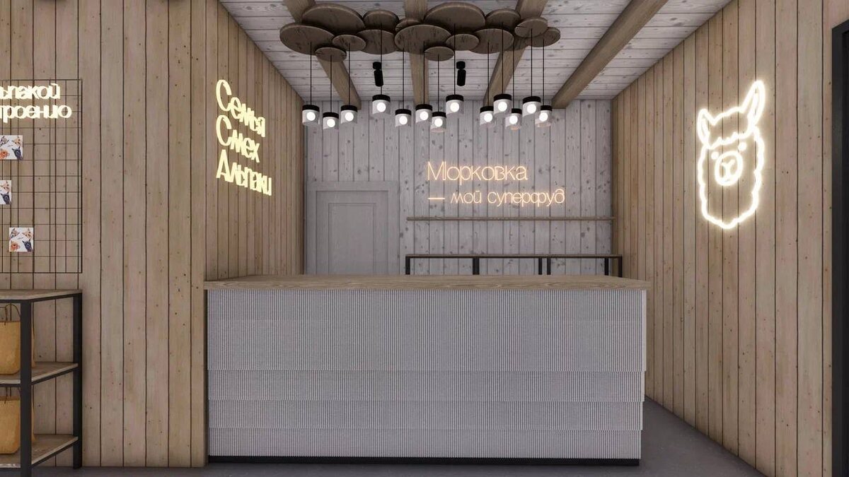Зато уже сейчас можно познакомиться с дизайном входной группы для будущего парка. Дизайн выполнили сотрудники службы архитектуры парка. Помещение входной группы уже само по себе могло бы стать прекрасной фотозоной. Его планируют украсить зеркалами, портретами альпак, сувенирами в виже фигурок животных.