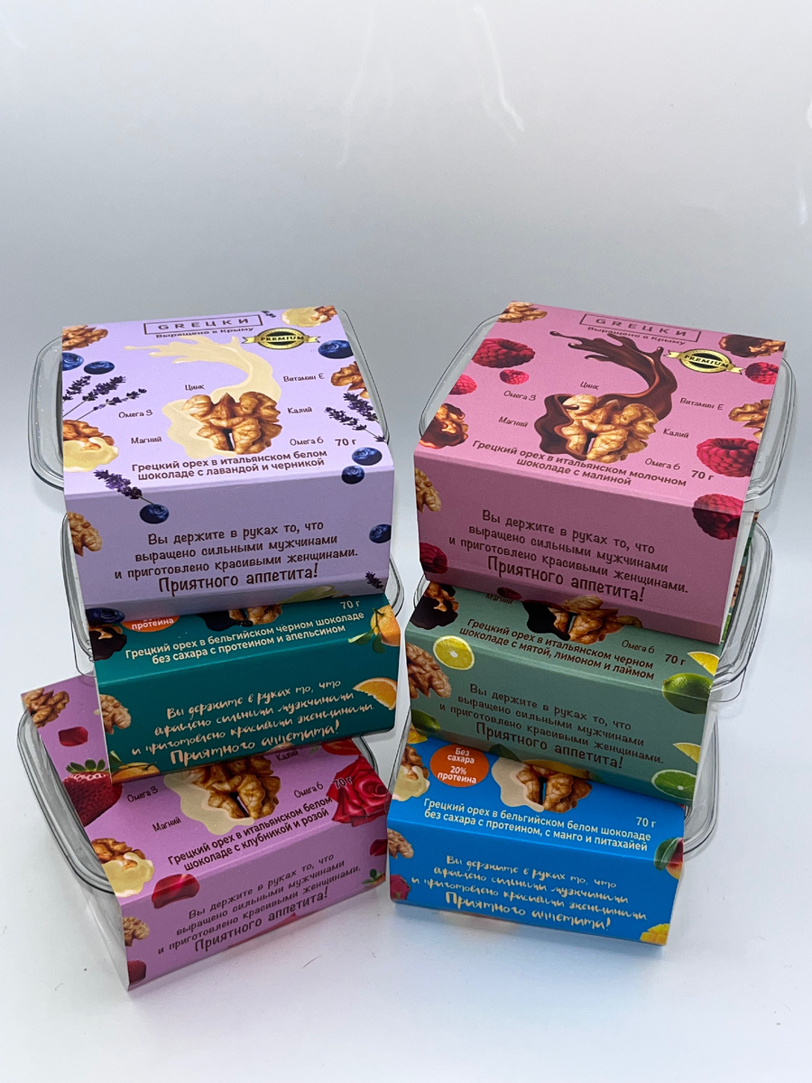 ГРЕЦКИ-это семейная компания занимающаяся выращиванием грецкого ореха и производством продуктов питания на его основе премиального качества! 1.) Терруар. Грецкий орех выращенный в Крыму по своим вкусовым качествам значительно превосходит импортный орех из Китая и Чили, доля которого на рынке, даже на юге России, более 95% 2.) Качество. Наши орехи всегда свежие, потому что хранятся в скорлупе и холодильниках, лущение ( отчистка от скорлупы) производится непосредственно перед производством продуктов. Мы не используем красители, ароматизаторы, консерванты и прочее, что снижает качество и цену продуктов питание. В производстве сладкой линейки, орех в шоколаде, вместо шоколадной глазури у нас настоящий, вкусный и полезный шоколад 3.) Уникальность. Создание новых и необычных вкусовых сочетаний с грецким орехом является одним из приоритетов нашей команды. Большинство рецептур такие как, запеченный грецкий орех с паприкой и тимьяном, грецкий орех в шоколаде с лимоном и лаймом или запечен