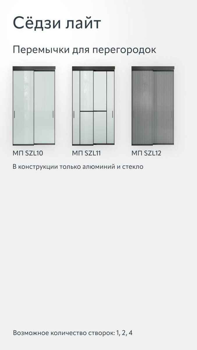 Перегородка Сёдзи Лайт. Седзи Лайт - это младшая сестра коллекции перегородок Сёдзи. Она так же вдохновлена исследованием японской традиции легких перегородок из рисовой бумаги, зонирующих помещение. За счет ограниченного набора цвета профиля, стекла, простой, но элегантной ручки, и небольшого количества декоративных раскладок - Сёдзи Лайт имеет приятную цену. Обсудите проект со специалистом в бизнес-парке Румянцево Киевское шоссе, 22-й километр, дв4с2кВ, корпус "В", 6 вход, 1 этаж, павильон 108В ⏱ Пн.- Вс. с 10:00 до 21:00 📱 +7(926)710-71-06 8(495)796 33 29 ✅ WhatsApp https://wa.me/79267107106 💬 Telegram https://t.me/sofia_doors_msk 🌐 https://yandex.ru/profile/40194768964