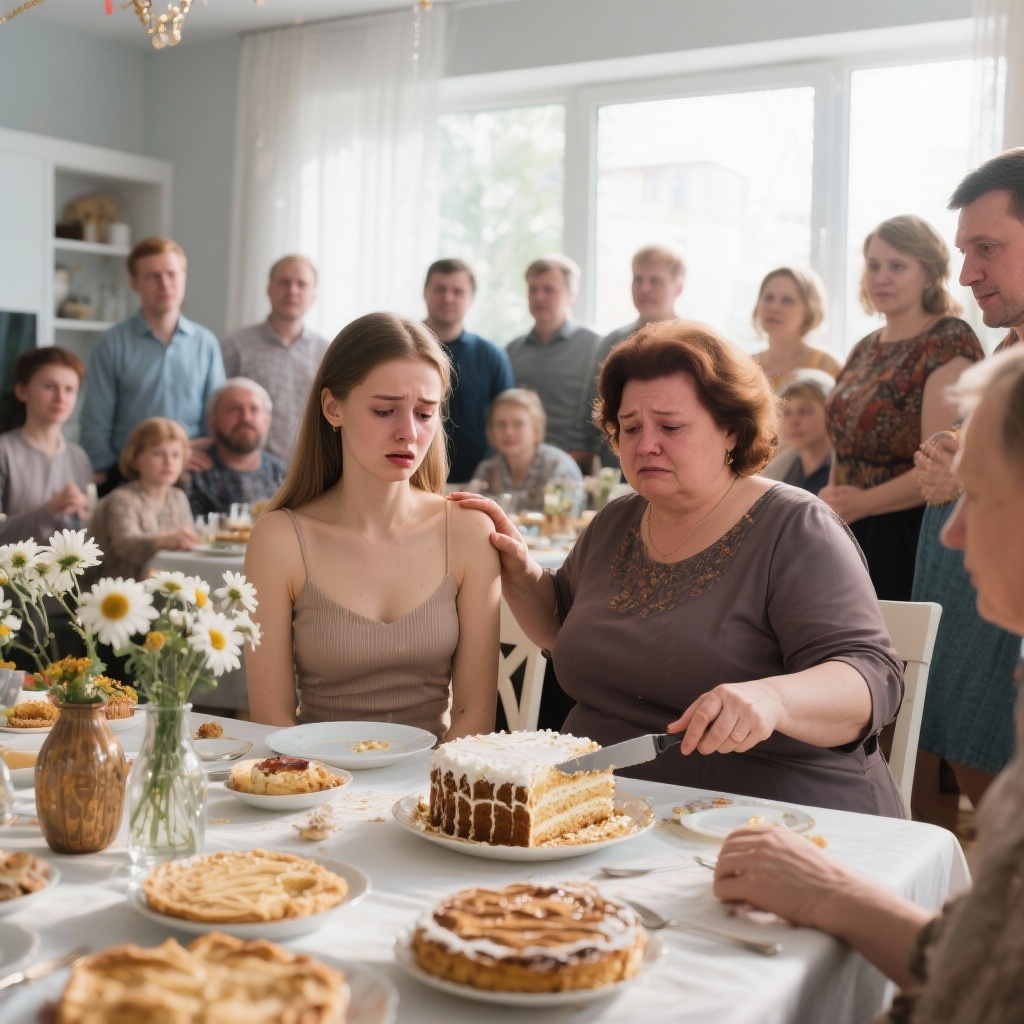 — Правильно, — громко заметила Ольга, сестра мужа. — Ты и так располнела в последнее время. Платье тебе уже в обтяжку.