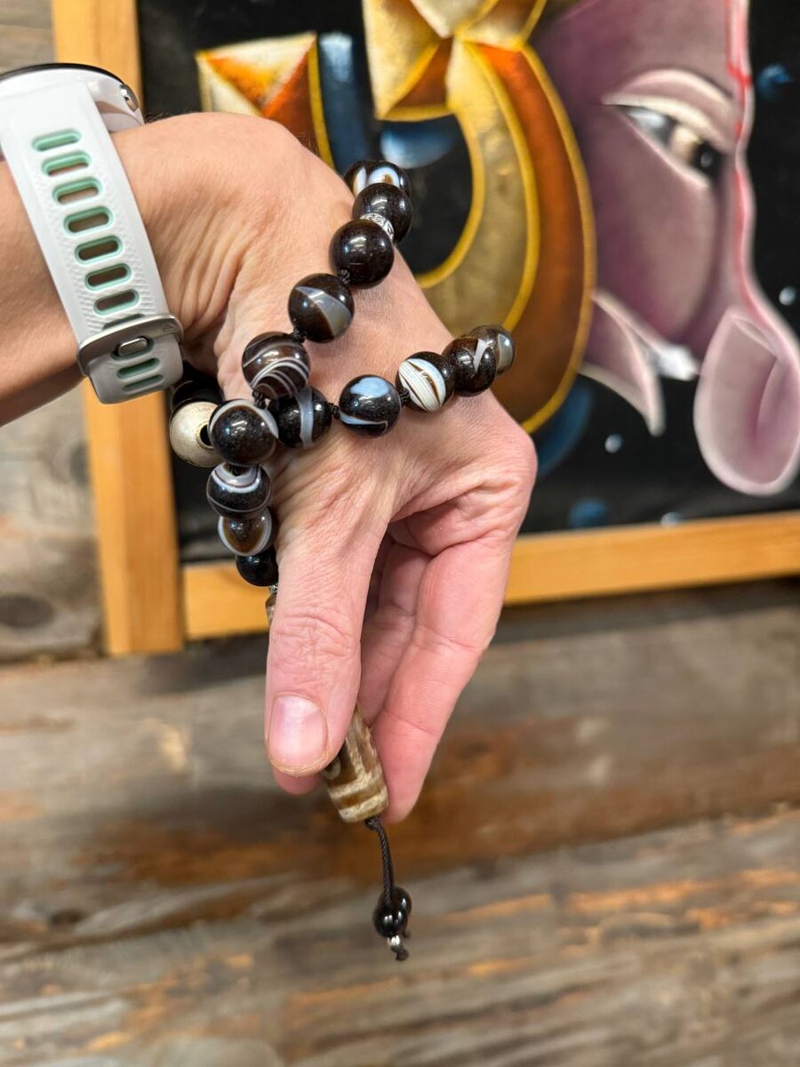 Чётки из винтажных крупных агатов, с бусиной дзи 9 глаз….