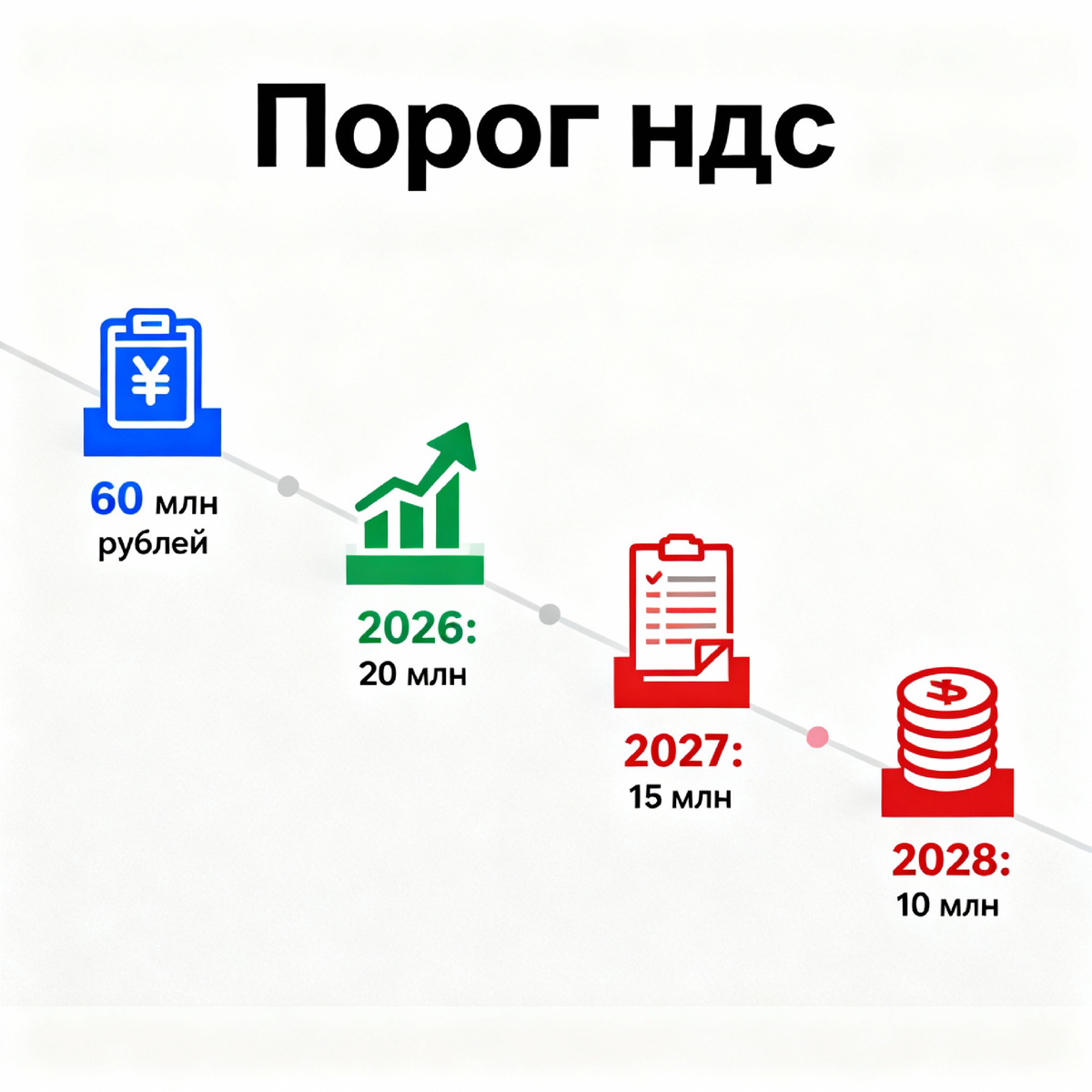 Порог для уплаты НДС малым и средним бизнесом в России будет снижаться постепенно в три этапа с 2026 по 2028 год. По словам премьер-министра Михаила Мишустина, с 2026 года компании и индивидуальные предприниматели на упрощенной системе налогообложения начнут платить НДС при доходах от 20 миллионов рублей в год, с 2027 года минимальный порог снизится до 15 миллионов рублей, а с 2028 года – до 10 миллионов рублей. Эта мера предусмотрена для смягчения условий применения НДС малым и средним бизнесом, чтобы адаптировать предпринимателей к новым правилам и снизить нагрузку на них. Для компаний, которые впервые столкнутся с уплатой НДС по новым порогам, планируется ввести мораторий на привлечение к ответственности за возможные ошибки в первый год. Кроме того, предусмотрено право отказаться в первый год от применения пониженной ставки НДС, что поможет минимизировать налоговые риски для новичков. Ранее планировалось сразу снизить порог с 60 миллионов рублей до 10 миллионов рублей, что вызвало