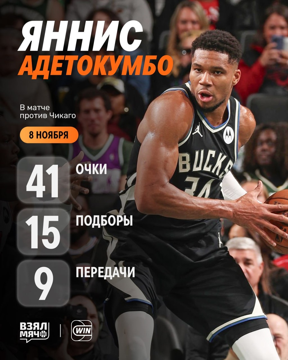 ✊🏼 Яннис Адетокумбо снова сделал разницу Греческий форвард отыгрался на бедном «Чикаго» как смог. За 37 минут отгрузил 41 очко, собрал 15 подборов, отдал 9 передач, сделал 2 перехвата и 2 блок-шота. Показатели форварда в этом сезоне: 33.4 очка 12.9 подбора 6.6 передачи Яннис идёт за наградой MVP? 🏀 ПОДПИШИСЬ — ЗДЕСЬ ЖИВЁТ БАСКЕТБОЛ!