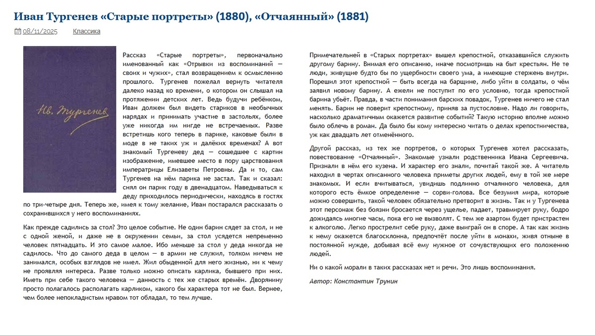 Иван Тургенев "Старые портреты", "Отчаянный" | Критика