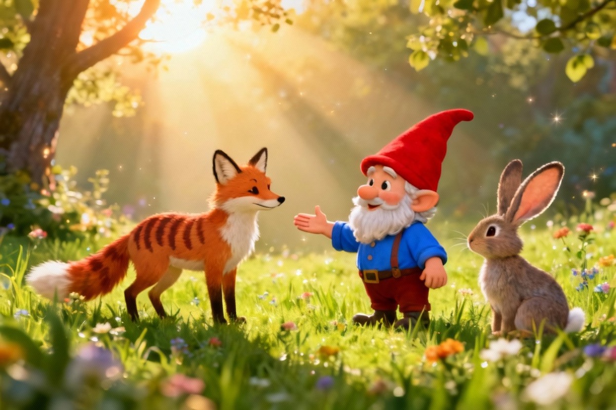 В одном уединённом уголке леса, в тени высоких деревьев, жил маленький гном по имени Тоби. Он был добрым и трудолюбивым, но был очень одинок. Тоби обожал свою маленькую лужайку, на которой росли яркие цветы и пахли сладкие травы. Лужайка была его собственным уголком счастья, но однажды гном задумался: что, если на его лужайке появится волшебство? — Почему бы не превратить этот уголок в место, где каждый сможет исполнить своё желание? — подумал Тоби. Он решил использовать свои магические способности, чтобы сделать лужайку волшебным местом, где люди и звери могли бы загадывать желания. Гном работал усердно, создавая маленькие магические камни и светящиеся деревца, которые могли исполнять желания. Вскоре его лужайка стала известной во всей округе, и все начали приходить сюда, надеясь, что их мечты сбудутся. Волшебные желания Одним из первых посетителей стал несчастный заяц, который был постоянно в поисках своего счастья и никак не мог найти его. Он подошёл к одному из волшебных деревьев