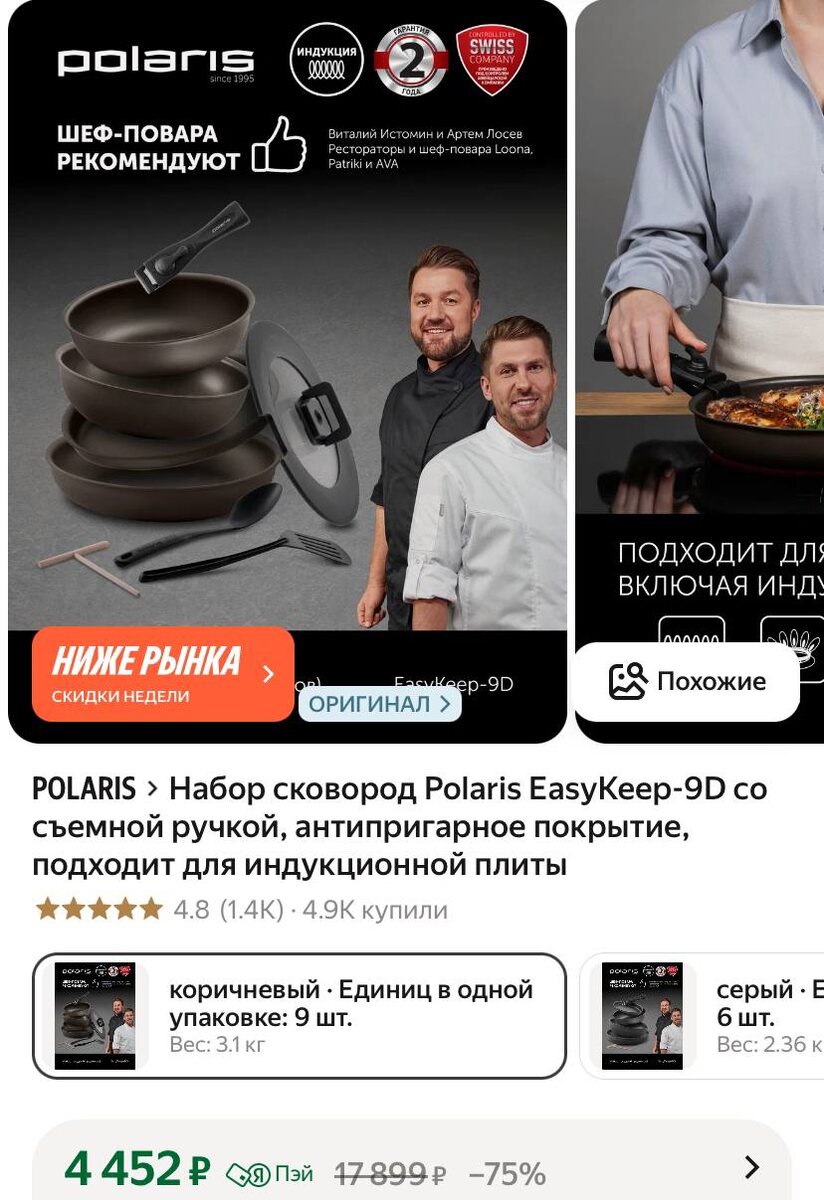 Набор сковород Polaris EasyKeep-9D со съемной ручкой, антипригарное покрытие, подходит для индукционной плиты (9 предметов) https://market.yandex.ru/cc/7xpciZ ⭐️BER103-AF — минус 100₽ на один любой заказ от 5000₽ ✅ Подписаться 🔣 Промокоды тут