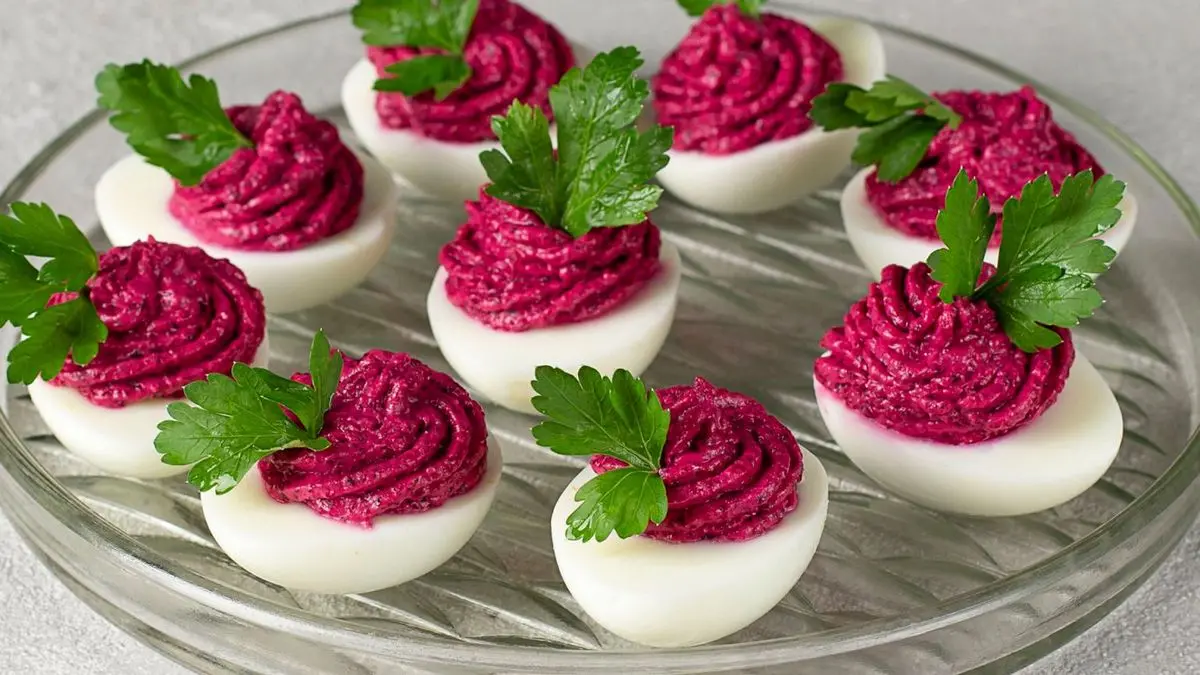 Надоели привычные бутерброды с колбасой или шпротами, а на икру и красную рыбу бюджет на растянуть? А вы попробуйте приготовить что-то из закусок ниже. Они недорогие, но красивые, вкусные и самое главное необычные. Такие вы точно к праздникам еще не готовили. 8 яиц 1 средняя свекла 1 красная луковица среднего размера 4 столовые ложки майонеза 1 ч. л. столового хрена перец по вкусу Яйца и свеклу отварить. Остудить и почистить. Разрезать яйца вдоль, убрать желтки. Растереть желтки с хреном и майонезом. Свеклу натереть на мелкой терке. Измельчить лук блендером. Соединить свеклу с яйцами и луком, посолить и поперчить по вкусу. Взбить все блендером до воздушной массы. Наполнить половинки яиц свекольной начинкой. Украсить листьями петрушки. Просто нарезаем куриное филе пластами, отбиваем и на каждый выкладываем ломтик ветчины и брусочек сыра. Сворачиваем в рулетик, скрепляем зубочистками и хорошо обжариваем до корочке на сковороде со всех сторон. Затем перекладываем в форму и в духовку на 1