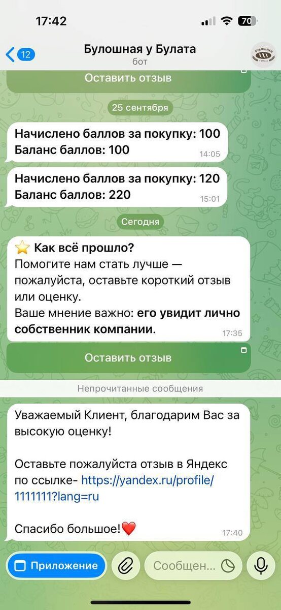 Как поднять рейтинг в Отзовиках Высокий рейтинг может приводить Новых клиентов, т.к. многие принимают решение о посещении компании по отзовикам. Все довольно просто и автоматизировано: - Клиент при покупке/оплате регистрируется в Программе лояльности через Телеграм бот - После покупки/посещения открывается в Телеграм окно Оцените обслуживание (картинка 1) - Если Клиент ставит 5 звезд, то автоматически через 15 минут приходит сообщение, где можно поставить любую ссылку на отзовик (картинка 2) За это можно давать баллы, например, добавить в текст «За отзыв получите 100 баллов, напишите в Телеграм боте «Отзыв» и начислим 100 баллов» В UDS текст сообщения на оценку настраивается в разделе Настройки- Обратная связь. #udsидея