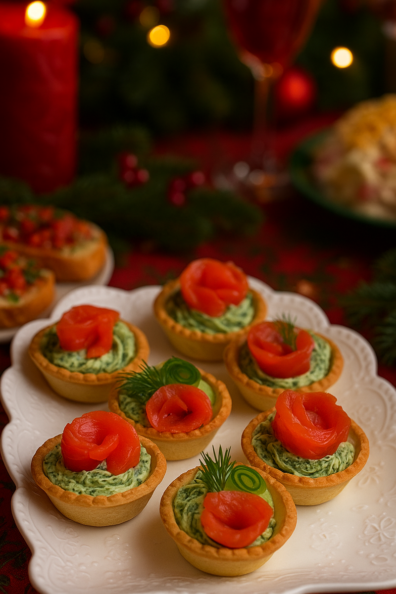 🎄 Новогодние тарталетки с красной рыбой — просто, эффектно и без лишней суеты