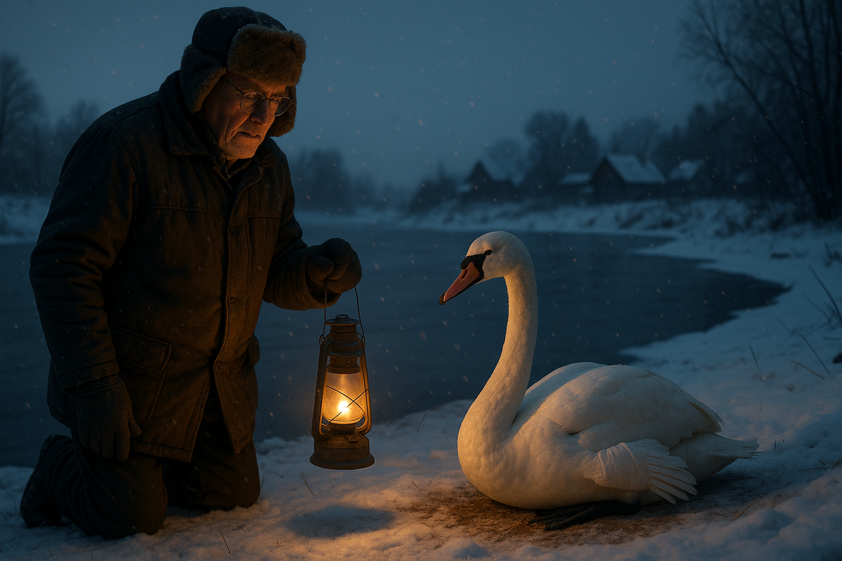 Вечером Егор сидел рядом на низком табурете и слушал, как за амбаром дышит зима: печь в глубине гудит, стены держат тепло, а где‑то за стеной хрустит снег под лисьими лапами. Лебедь почти не двигался. Раз в час он поднимал голову, пил. Егор подливал тёплой воды. Он шептал. «Дотяни, дружище».