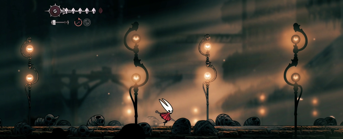 Хорнет очнулась в тёмном помещении. Лифт был разбит вдребезги, и у меня оставалось всего одно деление здоровья. Было ясно только одно: назад я скоро не вернусь. Разработчики устроили психологическую игру на выживание.