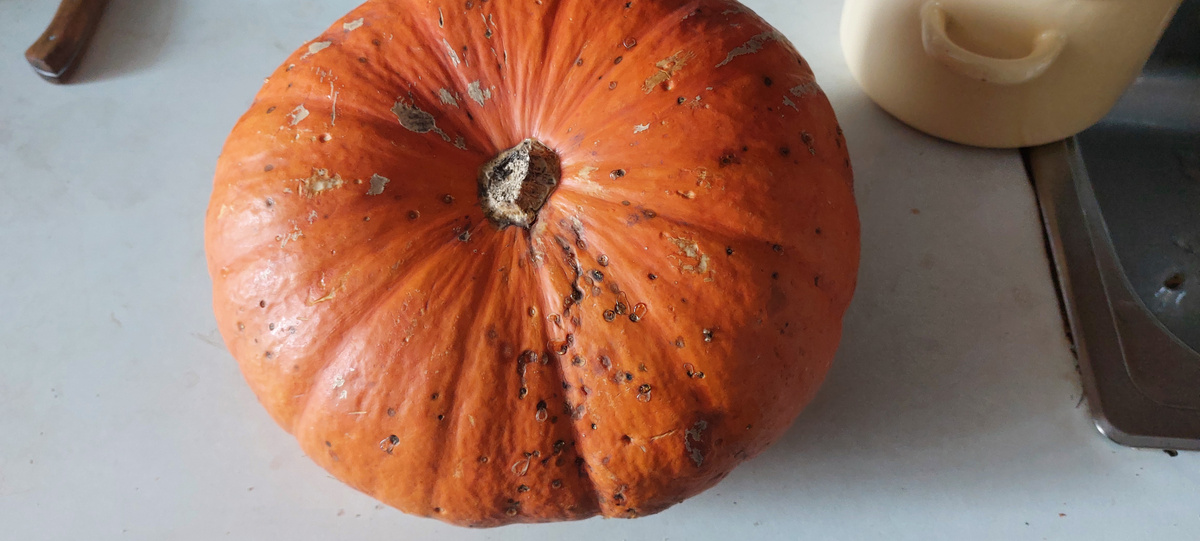 Зачем так подробно пою эту песнь о твкве. А затем, что я же сокращаю вроде как многое огородное и хорошо, что это была так сказать ОДИНОКАЯ дареная ТЫКВА. Больше никаких незнакомых сортов нам не нужно. Видите на первом фото на ее кожуре точки. Это о ее плохом хранении и говорит. Остальные мои тыквы, даже три лагенарии пока что живее всех живых.