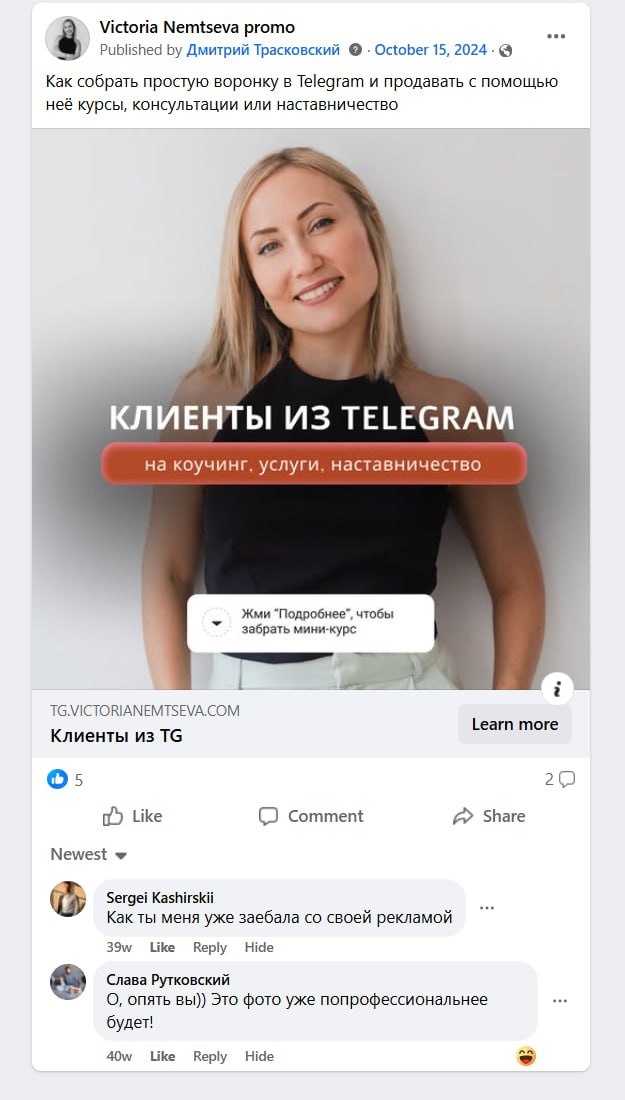 Боитесь, что скажут друзья или коллеги, когда вы начнёте вести блог и продавать? Посмотрите на эти хейтерские комментарии, которые мужчины оставляли под моей таргетированной рекламой. Если бы я ориентировалась на их мнение, я бы не заработала миллионы рублей сидя дома у себя в Барселоне. А кого-то чужое мнение реально останавливает от проявленности. Из-за этого многие теряют сильно больше: подписчиков, новых клиентов, друзей, вход в закрытые сообщества и, конечно, доход. Помните: если человек оставил вам💩в комментариях, это про большую боль, которая живет в нём и не находит экологичного выхода. Человеку плохо и он пытается за чей угодно счёт временно эту боль заглушить. Это всегда про него, а не про вас🙌🏻 А у меня сейчас новый уровень работы с контентом: что бы такое триггерное придумать, чтобы хейтеры пришли массово и разогнали мне алгоритм Инстаграм. Хочу хейтеров, чтобы они поработали на меня😁 Как у вас со страхом оценки? Есть, нет, как справляетесь?