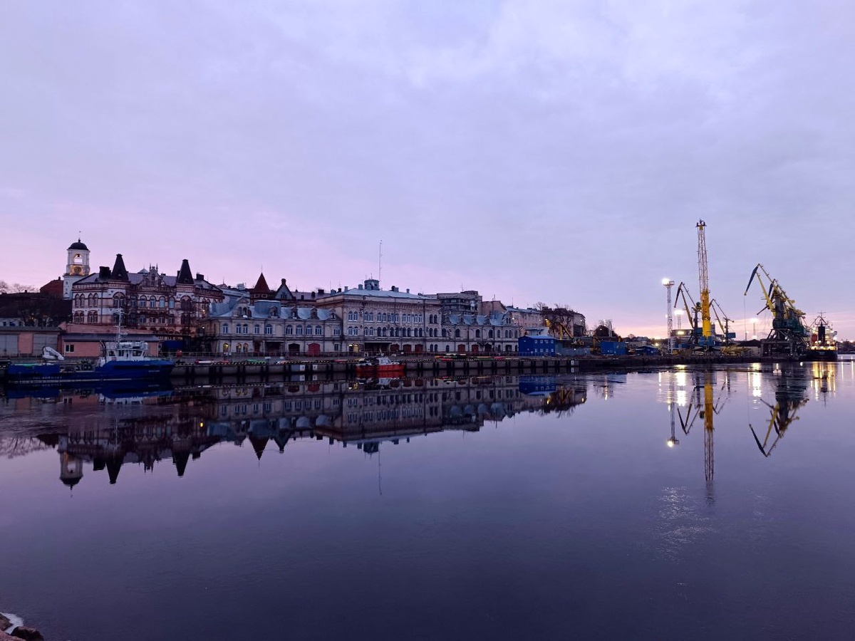 с набережной Адмирала Апраксина, у бетонной кубинской лодки. Другие интересные места в самом центре за Часовой башней: