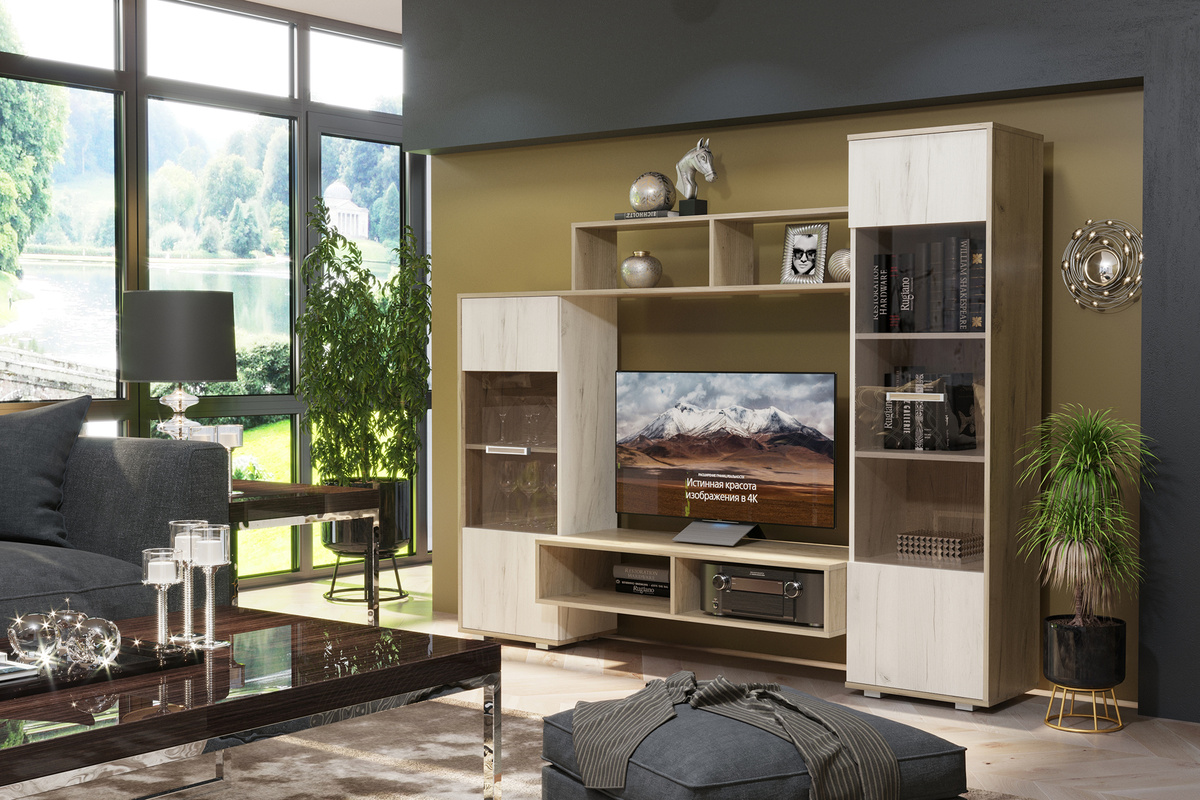 Они позволяют сочетать экологичность с эстетикой — как в спальнях серии Ольга, где древесная текстура и мягкий матовый блеск создают ощущение спокойствия и тепла. Для столешниц и фасадов всё чаще выбирают матовые поверхности под натуральное дерево — дуб с мягким рельефом, ясень, светлую сосну.
