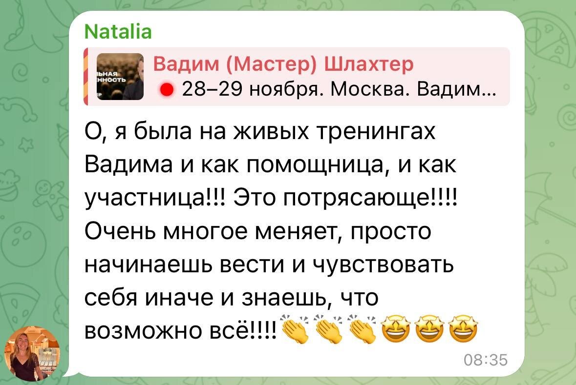 Наталия, благодарю. На интенсиве в Москве каждый сможет убедиться в этих словах сам — там совсем будет другая энергетика и другие эмоции. Зажгу огонь в сердцах каждого ⚡️
