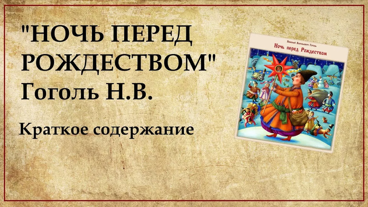 «Ночь перед Рождеством» (1832) — одна из самых ярких повестей цикла «Вечера на хуторе близ Диканьки». Это сказочная история о любви, смекалке и рождественском чуде, где переплетаются фольклорные мотивы, мистика и живой украинский быт. В канун Рождества над селом Диканька разворачивается мистическая суета: Отчаявшись, Вакула решает прибегнуть к помощи нечистой силы: Тем временем в Диканьке: Вакула возвращается в село: Чуб, убедившись в решимости и достоинстве Вакулы, благословляет брак. На Рождество устраивается свадьба. Чёрт, обманутый и посрамлённый, возвращается в ад. Солоха продолжает свою жизнь, не вмешиваясь больше в судьбы влюблённых. «Ночь перед Рождеством» — это не просто сказка о волшебстве, а гимн человеческому сердцу, которое в рождественскую ночь способно на подвиг и прощение.