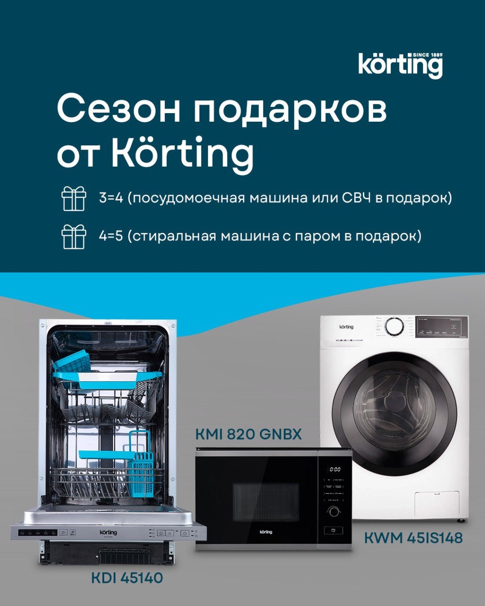 В подарок стиралки, посудомойки, микроволновые печи, Korting и не только!