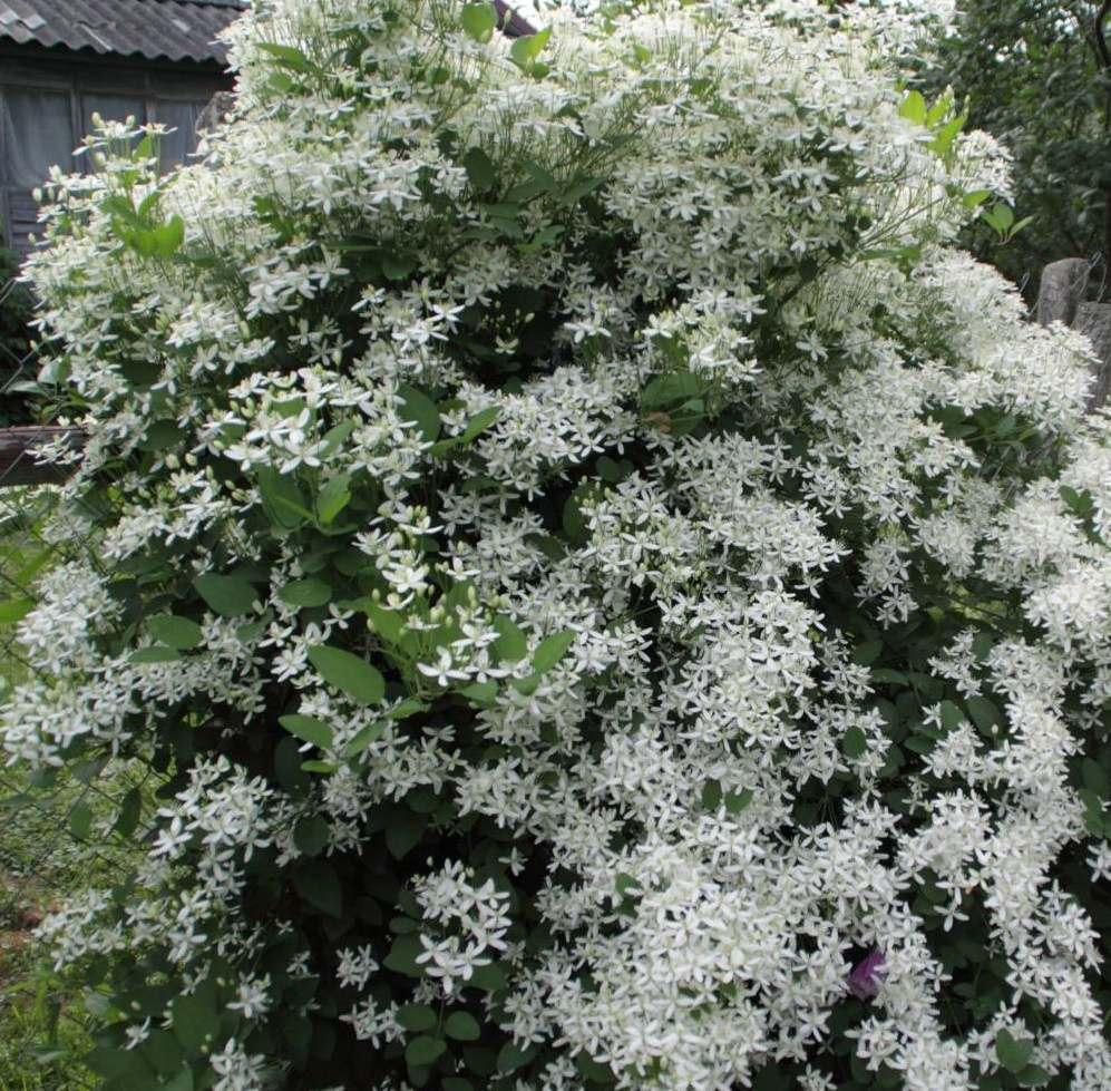 Клематис Белое Облако представляет собой превосходный выбор для украшения садового участка благодаря своим быстрым темпам роста, великолепному внешнему виду и неприхотливости в уходе. Это травянистый вид растения, отличающийся пустотелыми побегами, растущими прямо вверх. Средняя высота куста достигает около 2 метров. Листья сохраняют свежесть и привлекательность зеленого цвета вплоть до наступления осенних заморозков. Особенность цветков сорта Белое Облако состоит в том, что они образуют крупные кистевые соцветия. Один стебель может нести от 250 до 1200 мелких цветов диаметром примерно 1,5-2 сантиметра. Цветки имеют белый окрас с яркими желтыми тычинками, а одним из наиболее примечательных качеств является приятный аромат, особенно ощущаемый рано утром или вечером. Основные достоинства сорта включают устойчивость к засухе, зимостойкость и длительное пышное цветение. Единственный незначительный минус — необходимость регулярной фиксации растений на опорах. Цветение проходит дважды в сез