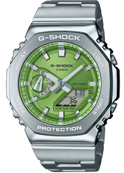 Casio GM-2110D-3A — это часы с цифро-аналоговым циферблатом, которые сочетают в себе прочность и лаконичный дизайн. Они оснащены: