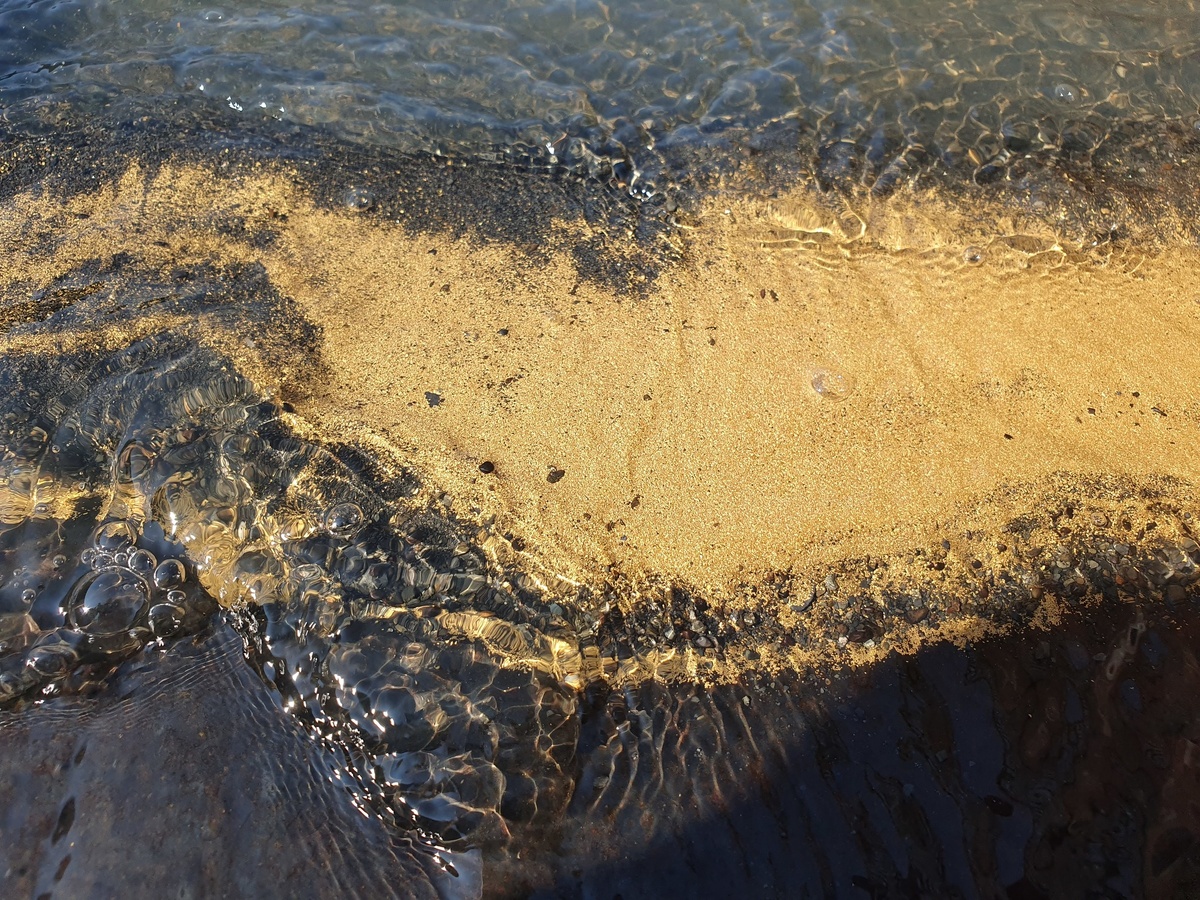 Мелкое золото может всплывать на поверхность воды из‑за поверхностного натяжения водной плёнки.