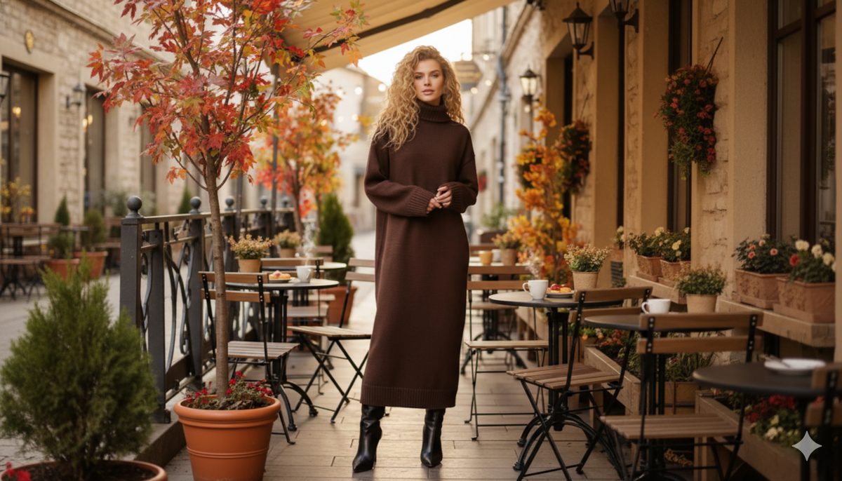 Шоколадное платье-свитер - это идеальный вариант для прохладной осени и зимы. Связанное из плотной смеси шерсти и акрила (50% шерсть, 50% акрил), оно согреет вас в холодные дни.