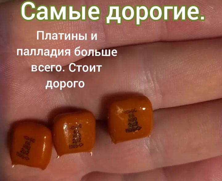 Всем привет! Сегодня хочу поделиться с вами интересной находкой, которая может оказаться весьма прибыльной. Недавно мне в руки попали вот такие рыжие КМ-конденсаторы. Если вы хоть немного разбираетесь в радиодеталях, то наверняка знаете, что такие экземпляры с определенной маркировкой – настоящая редкость. И не просто редкость, а ценный ресурс для скупщиков, готовых платить за них немалые деньги. Почему именно эти конденсаторы так ценятся? Секрет кроется в их составе. Внутри этих, казалось бы, обычных радиодеталей содержится очень высокое количество драгоценных металлов – платины и палладия. Именно эти элементы делают их столь желанными для переработчиков и ювелиров. Сколько можно заработать на рыжих КМ-конденсаторах? Как указано на фото, конденсаторы с такой специфической маркировкой пользуются высоким спросом. Скупщики готовы приобретать их по цене от 170 рублей за грамм. В моем случае, три таких конденсатора весят чуть больше 7 грамм. Простая арифметика показывает, что общая стоимос