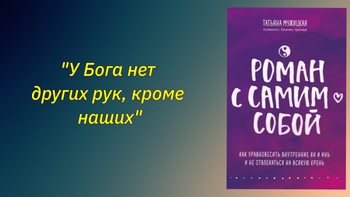 Я вот часто сталкиваюсь с книгами по психологии, и обычно это либо сухой учебник, либо что-то дико мотивирующее, но абсолютно оторванное от реальности. Но когда я открыла «Роман с самим собой» Татьяны Мужицкой, я поняла — это совершенно другая лига. Это не просто «как стать счастливым за десять шагов»; это, по сути, приглашение на свидание с самим собой, и это свидание будет самым долгим в вашей жизни. Таня Мужицкая не играет в гуру. Она говорит с читателем на равных — с юмором, без занудства, но при этом чётко попадает в болевые точки современного человека. Давайте честно: мы ведь все грешим тем, что ищем спасение или подтверждение где-то вовне. Идеальный партнёр, идеальная работа, идеальные обстоятельства — ждём, когда они придут и сделают нас цельными. Мужицкая же, без всякого менторского тона, показала мне, что самый крутой и надёжный альянс уже заключён. Он внутри. И я должна научиться его ценить, а главное — строить. «Если мы говорим о повседневной жизни, то инь – это вд