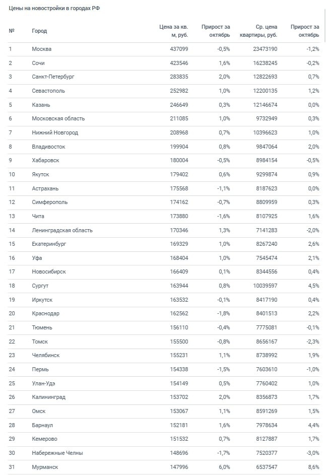 🔘 Москва: 23,47 млн руб. (-1,2%), Петербург: 12,82 млн руб. (+0,7%)