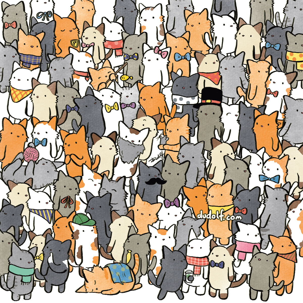 А один котик даже надел сапожки. Именно его спрятал на этой картинке художник Герегей Дудаш. Сможете отыскать Кота в сапогах?