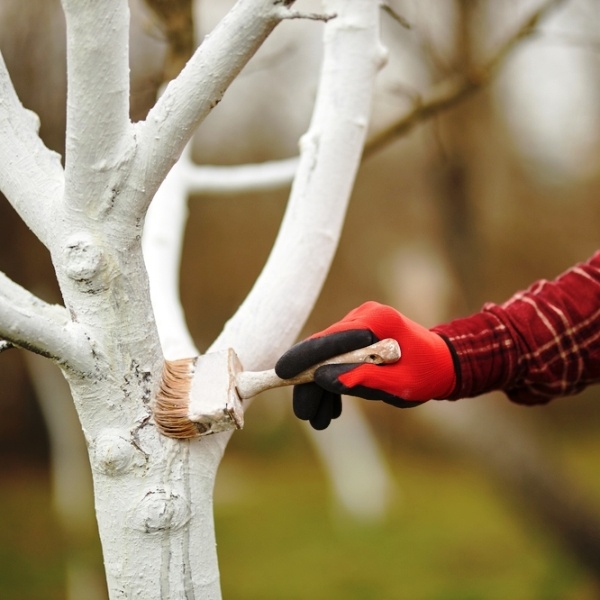 Садоводы-новички белят деревья весной, радуясь красоте обновленных стволов, однако специалисты садового центра рекомендуют проводить эти работы осенью. И такому решению есть научно обоснованное объяснение. Темные стволы плодовых деревьев и кустарников хорошо притягивают яркие солнечные лучи, которые уже в феврале растапливают лед, сохранившийся в коре. Однако ночные холода заставляют воду вновь замерзать, что приводит к появлению морозобоин, никак не улучшающих состояние деревьев. А молодые посадки могут получить ожоги коры, что тоже негативно скажется на здоровье обитателей земли. Белая же краска хорошо отражает солнце, снижая риск возникновения разрывов защитной оболочки стволов. Питомник растений напоминает, что лучшим временем для побелки является конец октября или начало следующего месяца, пока температура воздуха не опускается ниже 5 градусов. Работы проводят в сухую погоду: в этом случае краска хорошо фиксируется на поверхности и долго держится. Не белят деревья, которые были по