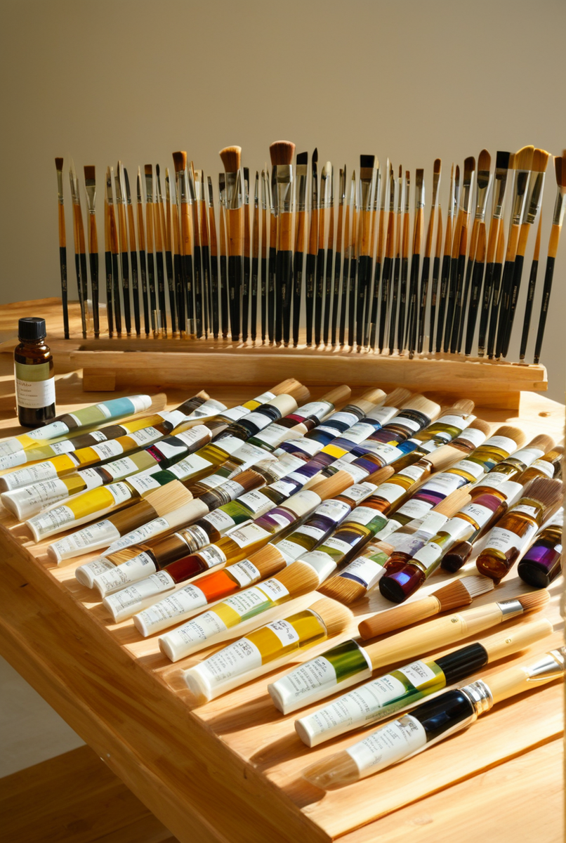 О: Для начала вам понадобятся несколько плоских, круглых и филберт-кистей из щетины или синтетики разных размеров. Щетина хороша для нанесения густой краски, синтетика — для более тонких линий. Уход за кистями критически важен: после каждого использования тщательно очищайте кисти для масляной живописи с помощью разбавителя для масла, а затем промойте мылом и водой. Правильный уход за кистями продлевает их жизнь. Мастихин — отличный инструмент не только для смешивания масляных красок на палитре для масляных красок, но и для нанесения краски, создания текстур и удаления лишнего. Он расширяет ваши техники рисования маслом.