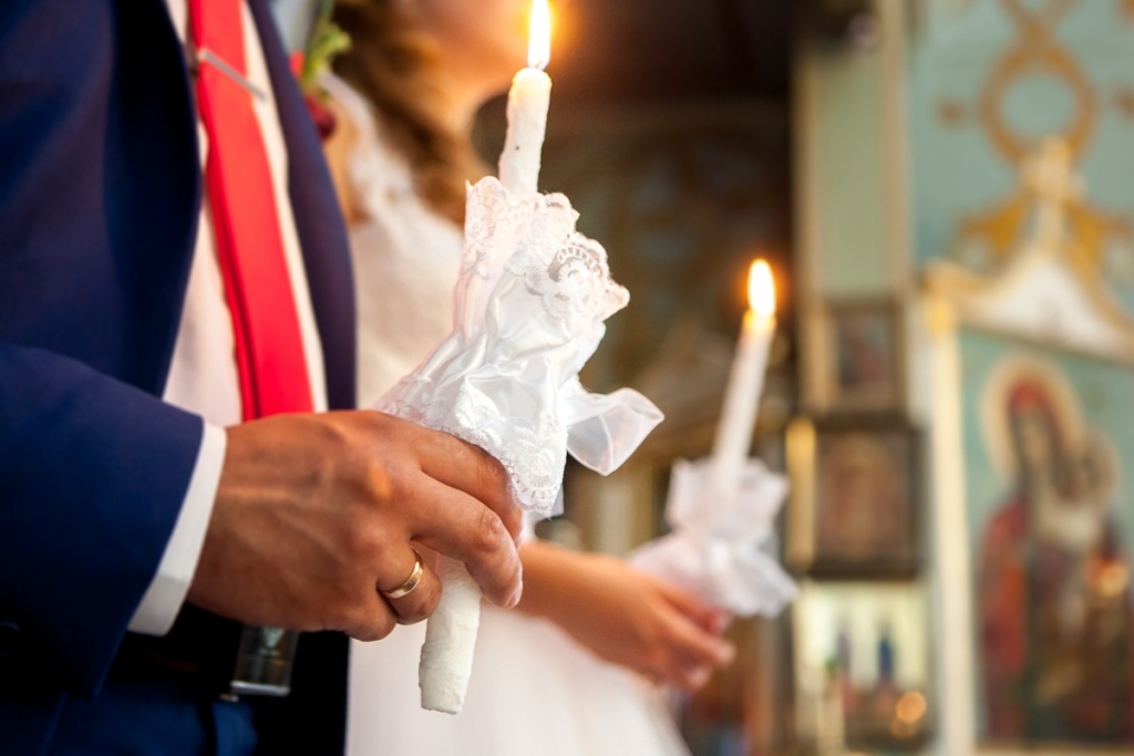 Поставьте перед собой вашу свадебную фотографию. Слева от нее положите фотографию мужа. Достаньте венчальную свечу и свою свадебную ленту. 2. Завязывание узлов на память