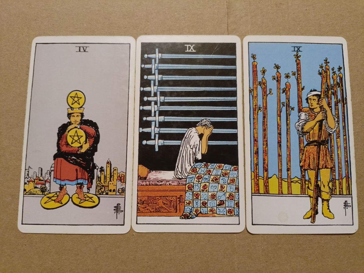 4 ПЕНТАКЛЕЙ; 9 МЕЧЕЙ; 9 ЖЕЗЛОВ
