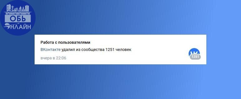 ↗ Администрация ВКонтакте отписала 1251 пользователя от группы Город Обь Онлайн