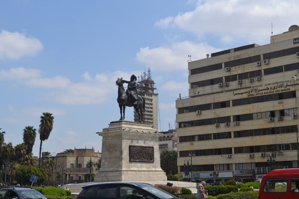 Где-то здесь рядом, я снял номерок за 250 фунтиков. Если направо пойдешь, то попадешь на площадь Опера. Станция метро также называется. На площади Ибрагим паша живет, вернее — сидит. Сидит он на коне красивом и арабском — вот бы мне на таком покататься! Если налево пойти, то к зданию местного центробанка попадешь. Вот оно — слева в кадре торчит. Где тут лево и где тут право — я сегодня не соображаю. Наверное — перегрелся, а может и наоборот — простудился. Про банк я пока что ничего не нашел. Так что в следующий раз расскажу, а пока пойду в кошарню и кого-нибудь съем До последней революции порция кошери стоила 3 фунтика, а теперь — все 11. Заодно скушал три лимона и 4 головки чеснока, чтоб поймать просветление В окне моем вот так. Некрасиво, зато тихо и спокойно. Нельзя брать окна на дорогу — спать поросята не дадут. Купил булочек по полтора — это, по нашему 4 рубля получается. Булочки вкусные и с сыром. Днем они дороже, а , сейчас распродажа после 8 вечера. В центре города все очень к