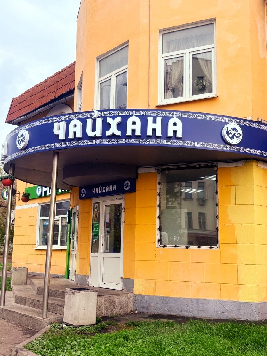 Чайхана занимает второй этаж здания, которое выкрасили во все оттенки желтого. На первом продают выпечку по типу самсы, беляшей и т.д. Мы пришли к открытию, к 10 часам. Но зайти в зал продавцы пирогов нам не дали, под предлогом, цитируем: «официант еще не пришел, подождите». Неоднозначная ситуация, конечно, учитывая время и то, что, на втором этаже, уже горел свет. Прождав минут двадцать, продавцы булок поняли, что мы не собираемся уходить, и пригласили подняться наверх. Дальше вообще начался сюр: торговец с первого этажа начал принимать у нас заказ и, раздавая меню, опрометчиво уточнил, что он здесь не работает.