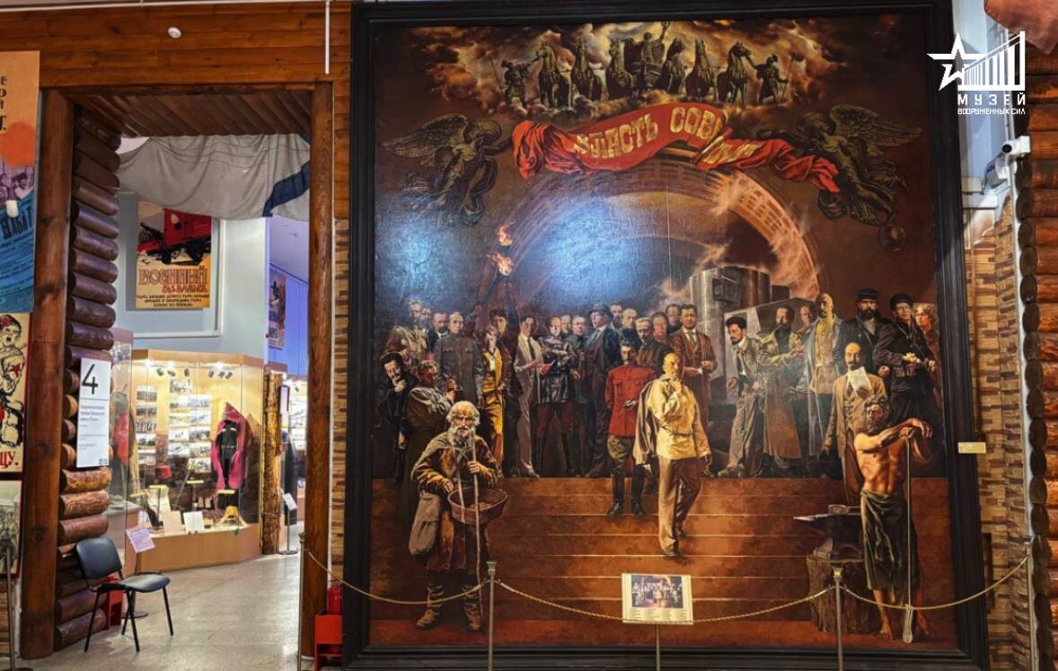 Картину «Власть — Советам» из этой публикации в зале №4 нашего музея написал советский и российский живописец, педагог, художник студии военных художников имени М. Б. Грекова С. Н. Присекин