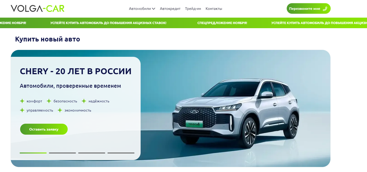 Волга Кар — это автосалон в Чебоксарах. Занимается продажей новых автомобилей и авто для работы в такси. Его реальное существование ставится под сомнение. Вероятнее всего, это рекламный лендинг. Кто обрабатывает заявки с него — большой вопрос. Больше интересного — в нашем обзоре. В автосалоне можно купить новый автомобиль или автомобиль для бизнеса. Салон позиционируется как мультибрендовый. В его онлайн-каталоге представлено более 20 марок. В ассортименте отечественные, китайские, корейские, европейские и японские бренды. Для каждого автомобиля есть карточка с основной информацией о нем. Однако на сайте используются общедоступные фотографии, а не фото конкретного автомобиля из выставочного зала. Отметим так же, что на сайте нет никаких отметок о том, что именно есть в наличии. Владельцем автоцентра Volga-Car является ООО «ПРЕМИУМ РЕКЛАМА» (ИНН: 5263108187). По крайней мере, так написано в футере сайта. И это уже красный флаг, поскольку данная компания является рекламным агентством