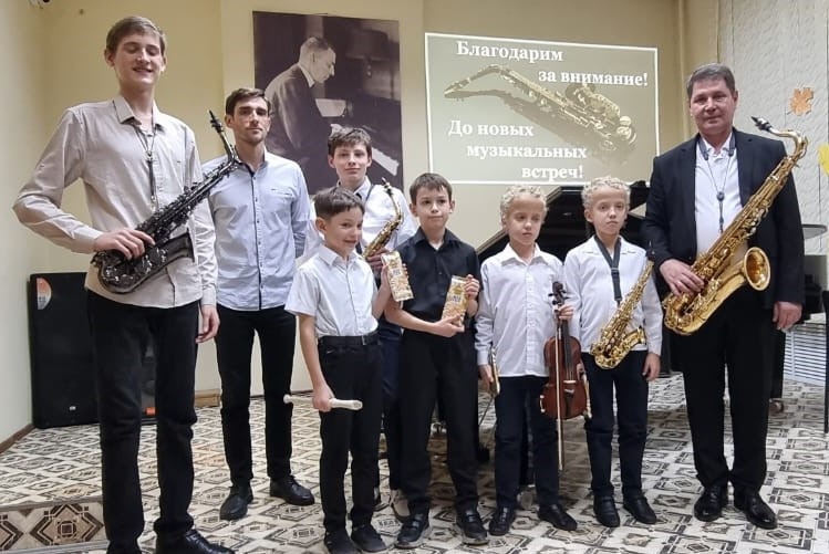 Творчески, в теплой дружеской атмосфере отметили Всероссийский день посвящения в духовики юных музыкантов педагоги и ученики Детской музыкальной школы. Октябрьским вечером они пригласили поклонников музыки на встречу «Элегантный мистер Саксофон». Ведущая концерта Татьяна Юрьевна Скворцова рассказала зрителям об истории изобретения и становления саксофона как популярнейшего духового инструмента XX-XXI столетий. В исполнении учащихся класса преподавателя Андрея Александровича Губарева и самого педагога прозвучали произведения самых разных жанров – классика, джаз, популярная музыка разных лет. Зрители сошлись во мнении, что это было действительно элегантно, а еще – небанально и зажигательно. Отметим, что решение о проведении Всероссийского дня посвящения в духовики юных музыкантов было принято на XI Санкт-Петербургском международном форуме объединённых культур. Это мероприятие по популяризации духовых инструментов подготовлено преподавателями и учащимися музыкальной школы по поручению мин