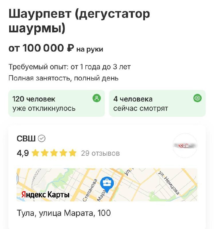 ШАУРПЕВТА срочно ищут в Туле — дегустатору шаурмы обещают платить 100 тысяч рублей. Выносить своё экспертное мнение нужно пять дней в неделю по 8 часов. Вы знаете, кому отправить вакансию 🤑 CtrlAltDelights- подписаться