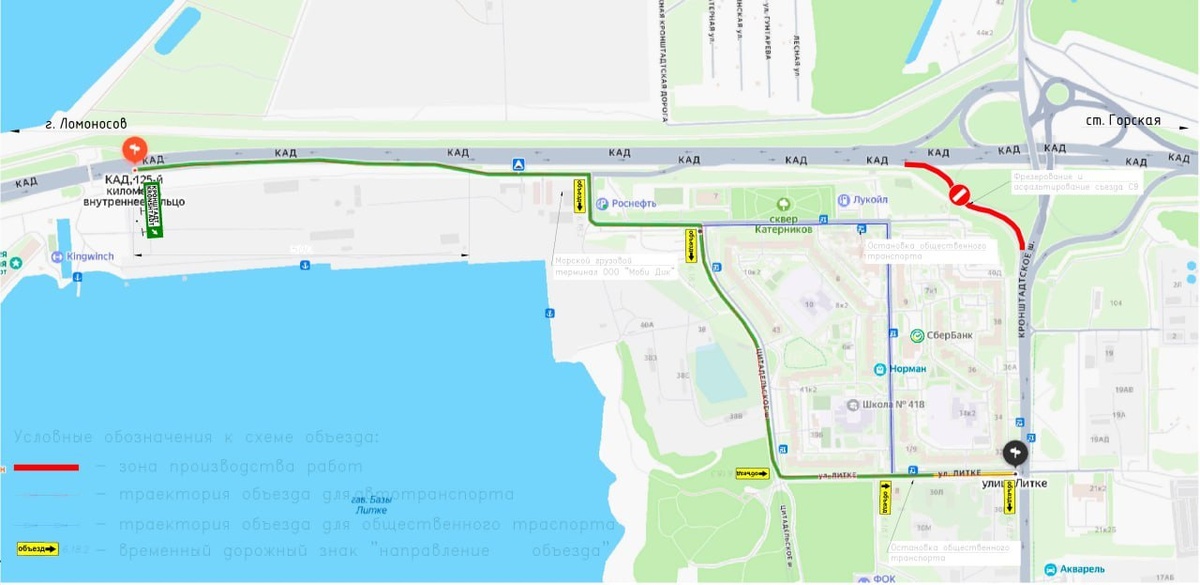 Схема движения по развязке КАД и Кронштадтского шоссе изменится на 2 недели из-за ремонта дорожного полотна. С 8:00 29 октября по 8:00 12 ноября работы будут вестись на съезде С9 (въезд в Кронштадт со стороны Ломоносова). В этот период движение транспорта перекроют. Транспорт направят через съезд к портовому комплексу «Моби Дик» и далее по ул. Гидростроителей, Цитадельскому шоссе и ул. Литке. Остальные съезды развязки по-прежнему доступны. Схема: Дирекция КЗС Подпишись на Город+