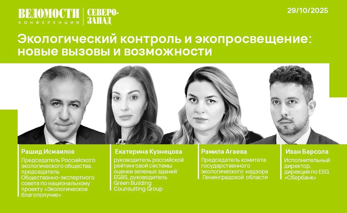 Представляем спикеров конференции «Экологический контроль и экопросвещение: новые вызовы и возможности» Деловое издание «Ведомости Северо-Запад» 29 октября проведет конференцию «Экологический контроль и экопросвещение: новые вызовы и возможности». Ключевыми темами для обсуждения станут вопросы экологического контроля, инструментов взаимодействия власти, бизнеса и общества в сфере экологической повестки, а также привлечения общественных организаций к работе по экопросвещению и развитию экотуризма. 🔁 В фокусе обсуждения: ®️Экологический контроль как драйвер устойчивого развития региона: правовые механизмы и вопросы регулирования. ®️Экологическая ответственность бизнеса: как минимизировать негативное воздействие на окружающую среду. ®️Эко-инициативы и привлечение общественности к экологической повестке: практики, проекты, перспективы. ®️Синергетический эффект экологического туризма: от развития экономики к достижению экобаланса. Мероприятие пройдет в онлайн формате. Трансляция начне