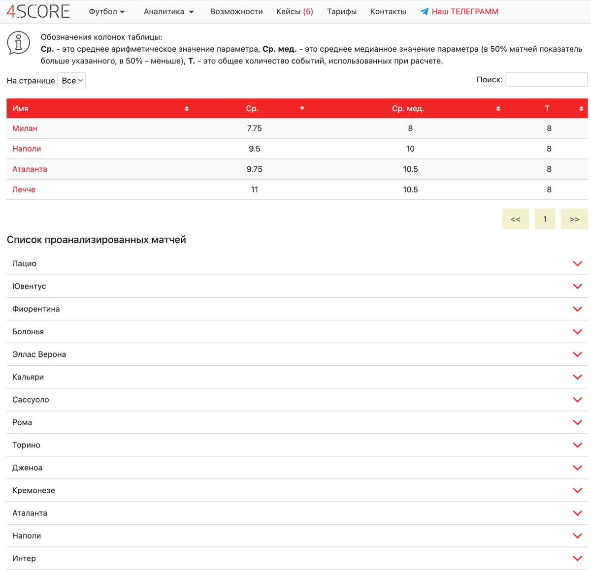 СТАТИСТИКУ УГЛОВЫХ Италии
