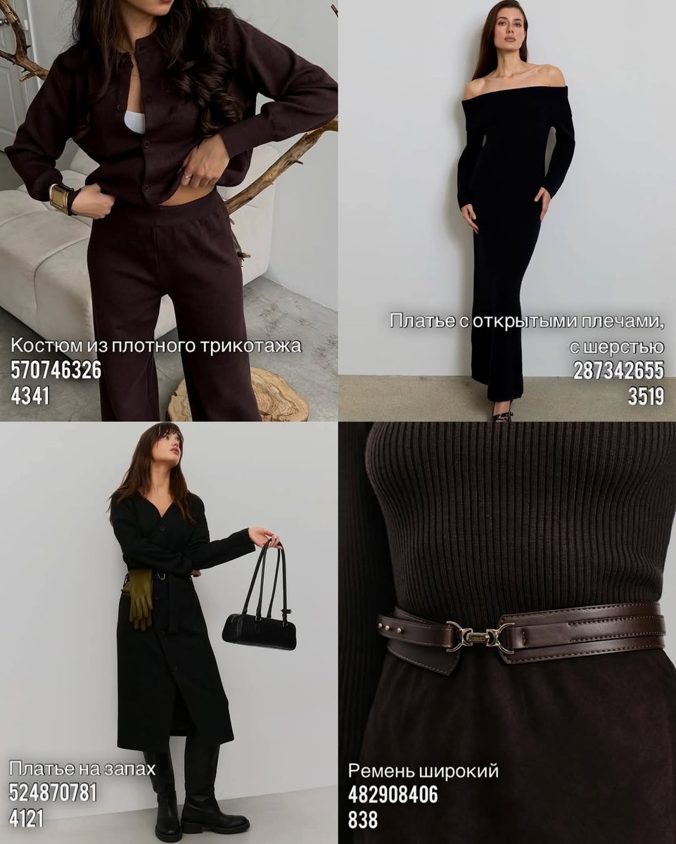 Эта подборка — готовый костяк осеннего гардероба. Вещи выверены по крою и цвету: глубокий шоколад и классический чёрный легко сочетаются между собой и поддерживают любую основу — от белого трикотажа до карамельной кожи. Возьмите из списка то, что ближе вашему ритму, или соберите всю мини-капсулу — и у вас будет десятки сочетаний на работу, прогулки и вечерние встречи без лишних усилий.