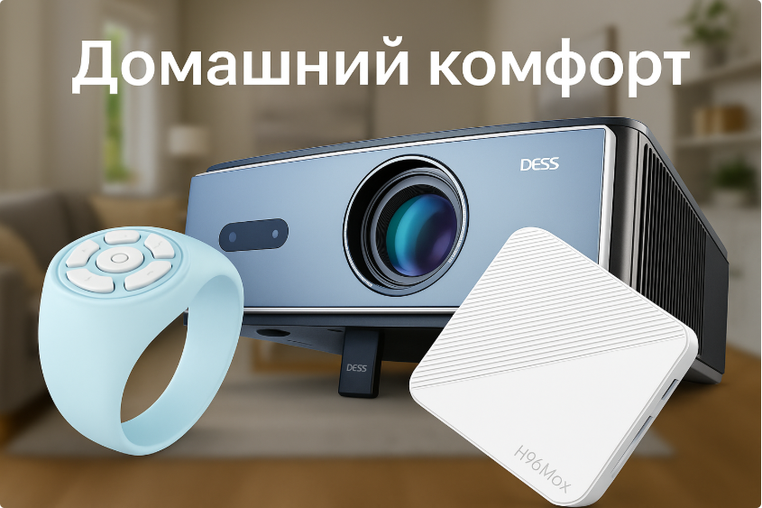 Автоматическая фокусировка и коррекция трапеции упрощают настройку проекции, исключая необходимость ручной регулировки. Благодаря встроенным модулям Wi-Fi и Bluetooth можно подключать смартфон или ноутбук без проводов. HDMI- и USB-порты позволяют использовать устройство с приставками, флешками и компьютерами, делая просмотр фильмов и презентаций максимально удобным.