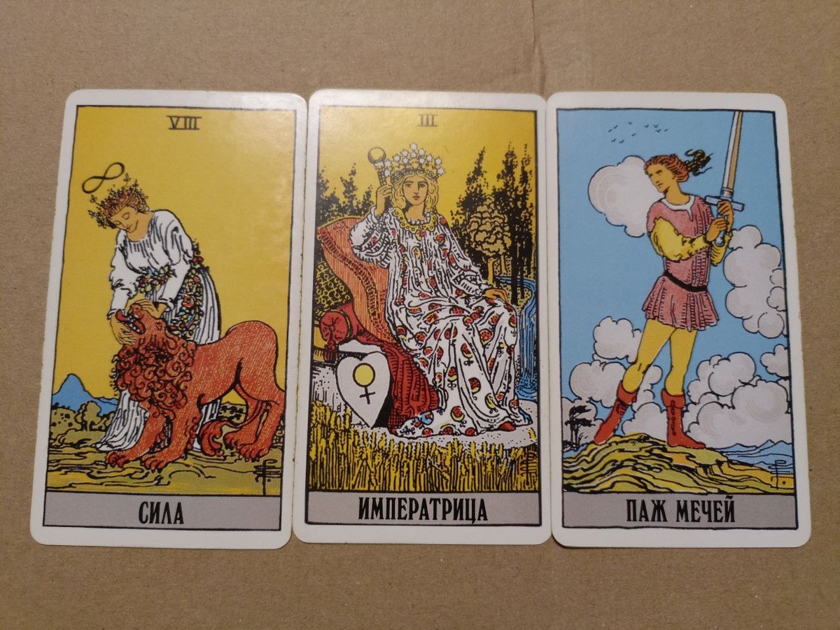 6 МЕЧЕЙ; ПАЖ КУБКОВ; 8 ЖЕЗЛОВ