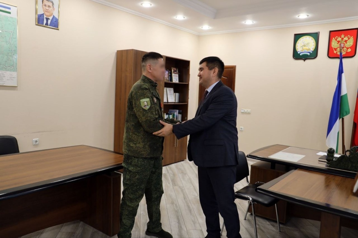 В Башкирии продолжают находиться в краткосрочном отпуске участники СВО. Во время отдыха военнослужащие встречаются с главами районов и городов. Бойцы рассказывают о фронтовых буднях, передают землякам приветы от сослуживцев и благодарят за гуманитарную поддержку на передовой. Накануне к главе администрации Гафурийского района Венеру Вахитову зашёл участник СВО из Красноусольского с позывным «Албанец». На переднем крае мужчина служит в составе первого добровольческого башкирского батальона имени Героя России Минигали Шаймуратова с осени 2022 года. Боевые задачи выполняет в должности заместителя командира по вооружению. За боевые заслуги воин награждён орденом генерала Шаймуратова, медалью Жукова и другими госнаградами. «Его краткосрочный отпуск подошел к концу. Завтра „Албанец“ возвращается на передовую, к боевым товарищам. А здесь, дома, ждут любимая супруга и двое детей. Айнур осознанно выбрал путь защитника Отечества. Такие парни — наша гордость и опора. В их стойкости — сила России.