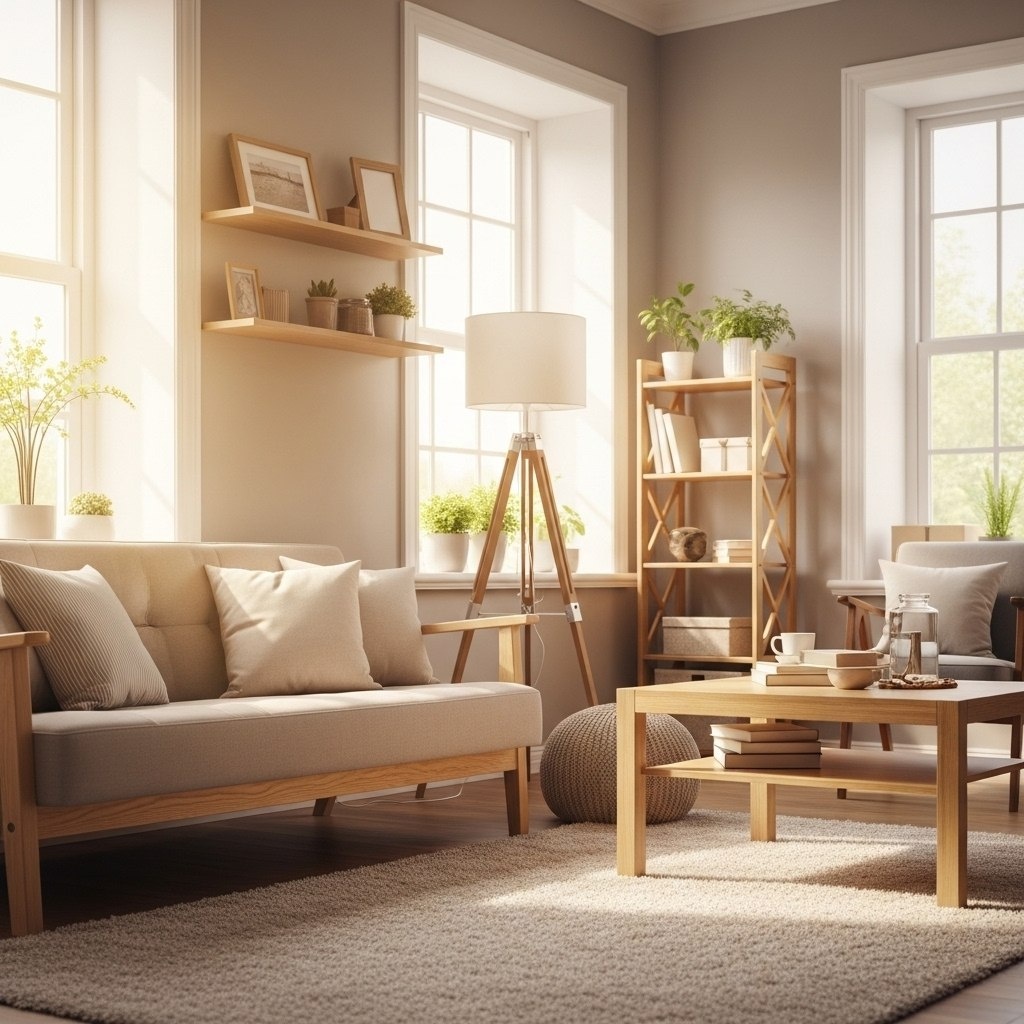 Представьте гостиную, где еще вчера царил осенний хаос: разбросанные подушки, пыль на полках и тусклый свет за окнами